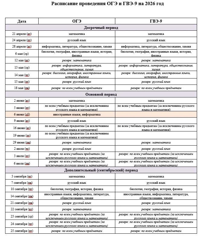 Приказ от 07-11-2025 №800"Об утверждении единого расписания и продолжительности ГВЭ по каждому учебному предмету при проведении в 2026 году"