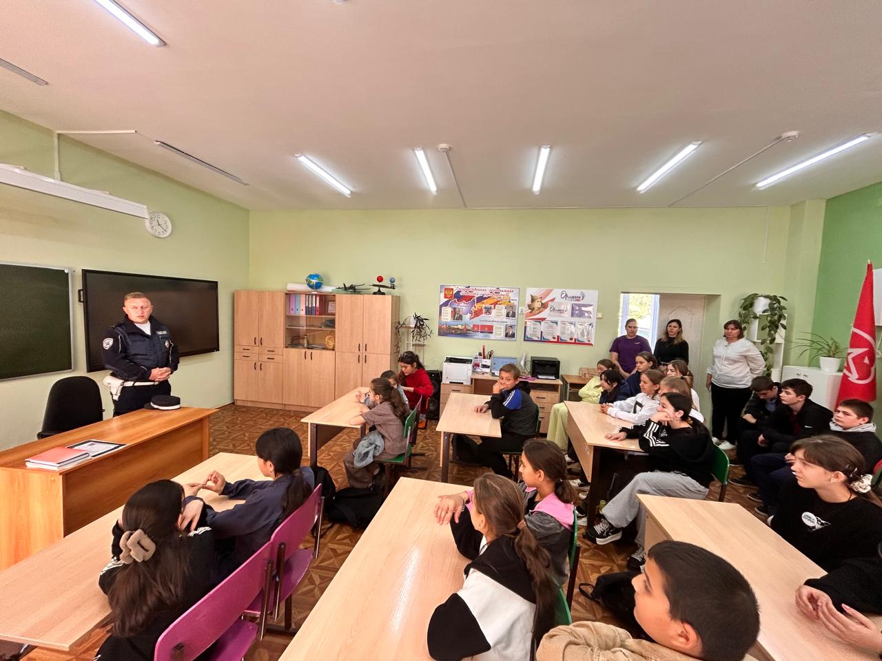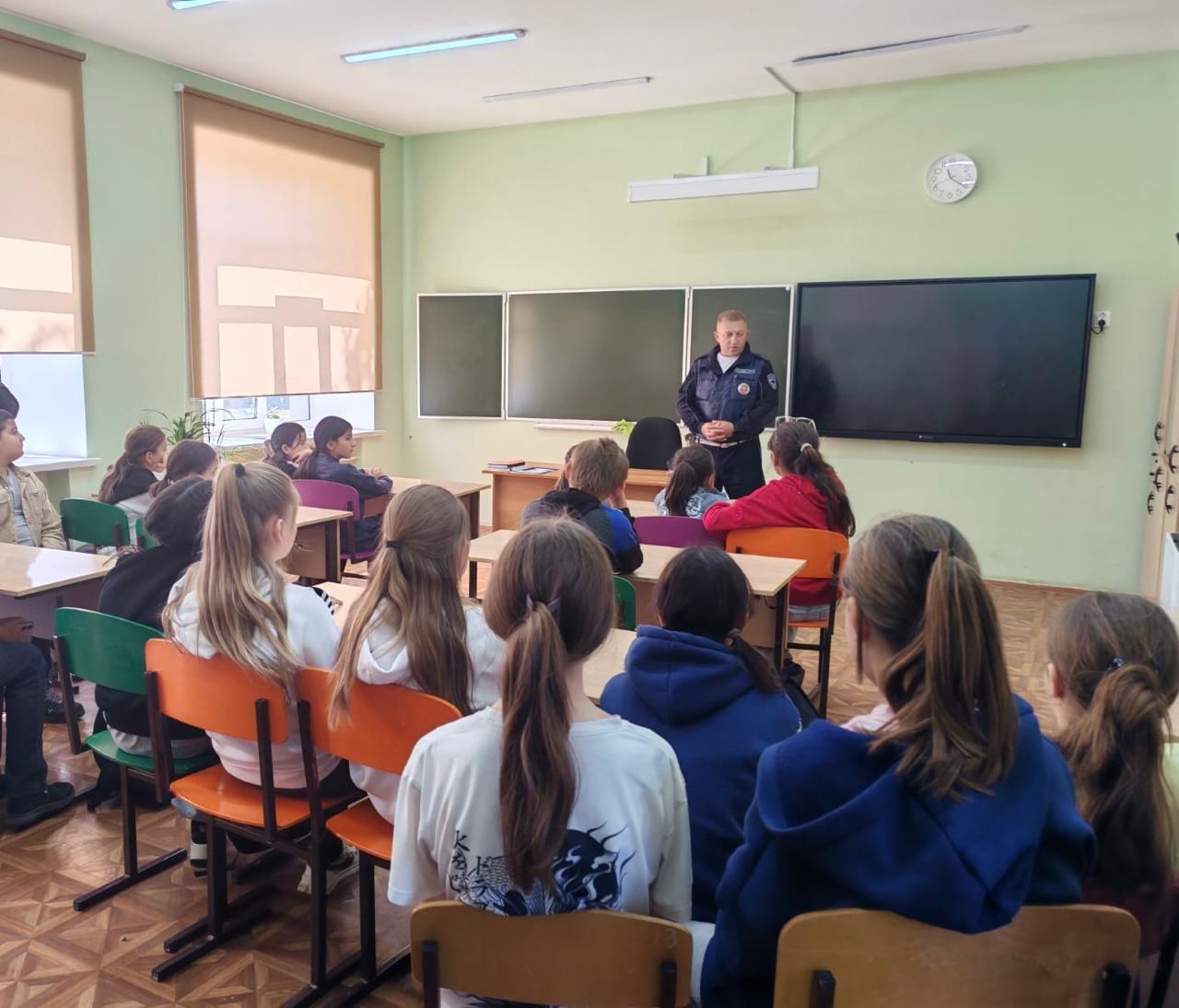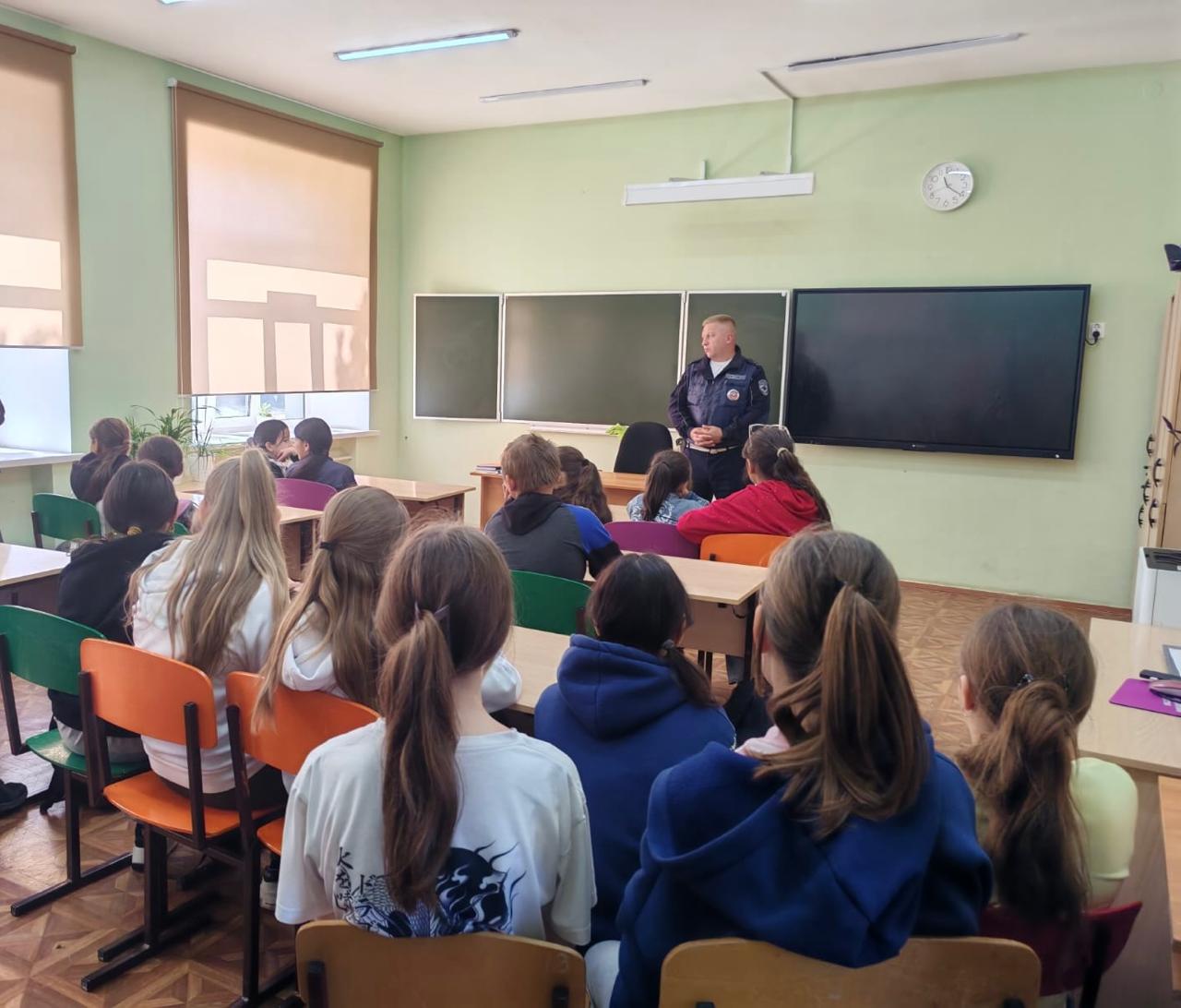 Инспектор полиции ознакомил школьников со статистикой ДТП с участием детей и обозначил основные причины дорожно-транспортных происшествий.