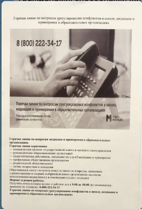 На информационных стендах ОО размещена актуальная информация о деятельности школьной службы медиации .